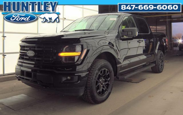 2024 Ford F-150 3.5L PowerBoost Full-Hybrid V6, 4WD, 400W Cab & Bed Outlets, 6 Speakers, 6" Black Running Boards, Adaptive Cruise Control w/Stop & Go, AM/FM radio: SiriusXM with 360L, Auto-Dimming Rear-View Mirror, Black Exterior Badging, Black Grille, Body-Color Front & Rear Bumpers, Cloth 40/Console/40 Front Seats, Console Worksurface, Dark Interior Appliques, Electronic Locking w/3.73 Axle Ratio, Equipment Group 302A Mid, Floor Shifter, Ford BlueCruise Equipped (90-Day Trial), Gray Box Side Decal, GVWR: 7,400 lbs Payload Package, Heated Front Seats, Intelligent Access w/Push Button Start, Mobile Office Package, Navigation system: Connected Navigation, Partitioned Lockable Rear Storage, Power Glass Heated Sideview Mirrors, Power-Sliding Rear Window, Radio data system, Radio: AM/FM SiriusXM w/360L, Remote Start System w/Remote Tailgate Release, Speed Sign Recognition, SYNC 4 w/Enhanced Voice Recognition, Unique Sport Cloth 40/Console/40 Front-Seats, Wheels: 18" Gloss Black, XLT Black Appearance Package.