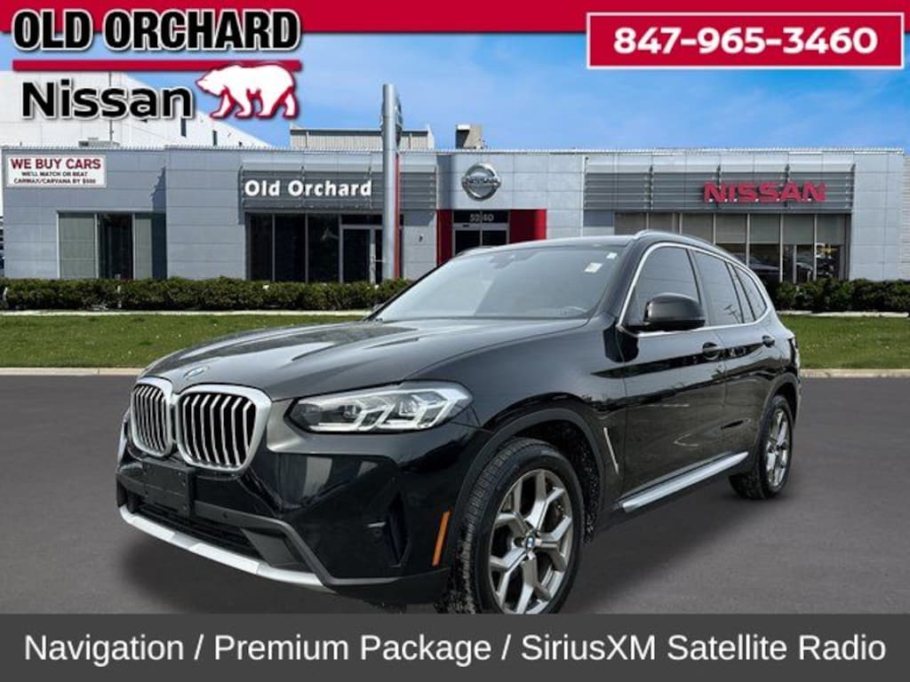 2023 BMW X3 8-Speed Automatic Sport 8-Speed Automatic Sport, 12 Speakers, 4-Wheel Disc Brakes, ABS brakes, Air Conditioning, Alloy wheels, AM/FM Radio, Apple CarPlay & Android Auto Compatibility, Automatic temperature control, BMW Assist eCall, BMW TeleServices, ConnectedDrive Services, Driver Lumbar Support, Dual front impact airbags, Enhanced USB & Bluetooth w/Smartphone Integration, Front dual zone A/C, Heated Front Seats, Heated Steering Wheel, Hi-Fi Sound System, Live Cockpit Pro w/Navigation, Low tire pressure warning, Navigation, Panoramic Moonroof, Premium Package, SiriusXM Satellite Radio, Tachometer, Telescoping steering wheel, Tilt steering wheel, Trip computer, Wheels: 19" x 7.5" Y-Spoke (Style 693), WiFi Hotspot. Clean CARFAX. 21/28 City/Highway MPG 2.0L I4 TwinPower Turbo