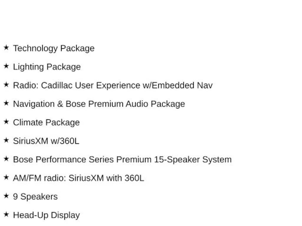 - Emergency communication system: OnStar and Cadillac connected services capable