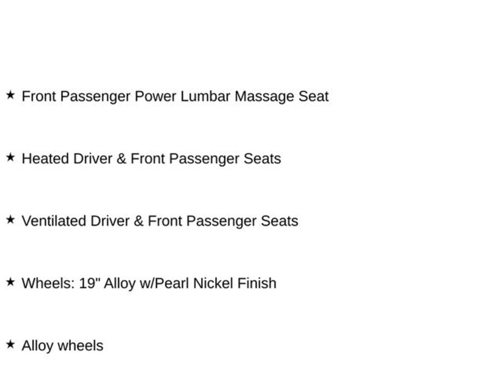- Ventilated Driver & Front Passenger Seats