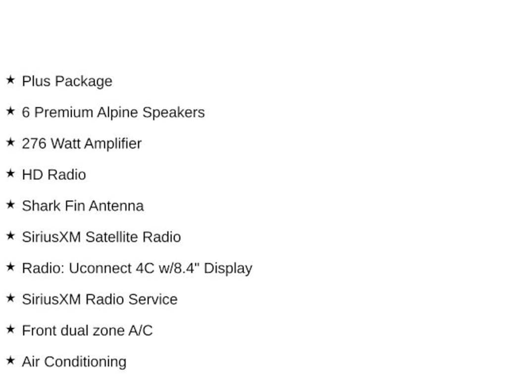 - Wireless phone connectivity: Uconnect w/Bluetooth