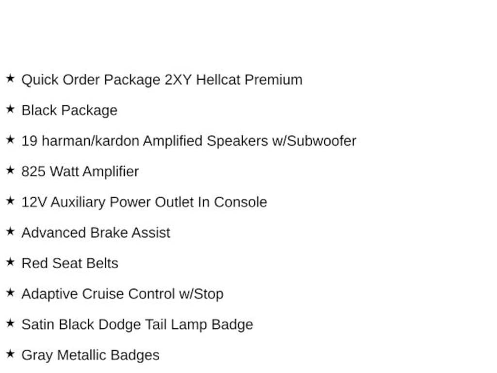 2024 Dodge Durango 8-Speed Automatic AWD, 1 USB Charging Port in Console, 12V Auxiliary Power Outlet In Console, 19 harman/kardon Amplified Speakers w/Subwoofer, 2nd Row Console w/Armrest & Storage, 3rd Row Floor Mat & Full Console, 7 & 4 Pin Wiring Harness, 825 Watt Amplifier, Adaptive Cruise Control w/Stop, Advanced Brake Assist, Black Package, Blind Spot w/Trailer Detection, Class IV Receiver Hitch, Eclipse Black Exhaust Tips, Forged Carbon Fiber Interior Accents, Full Speed Forward Collision Warning Plus, Gray Metallic Badges, High Performance Laguna Leather Seats, Illuminated Rear Cupholders, Lane Departure Warning Plus, Quick Order Package 2XY Hellcat Premium, Red Seat Belts, Satin Black Dodge Tail Lamp Badge, Suede Headliner, Trailer Brake Control, Wheels: 20" x 10" Lights Out Aluminum. Clean CARFAX. CARFAX One-Owner. 6.2L Supercharged HEMI V8 SRT