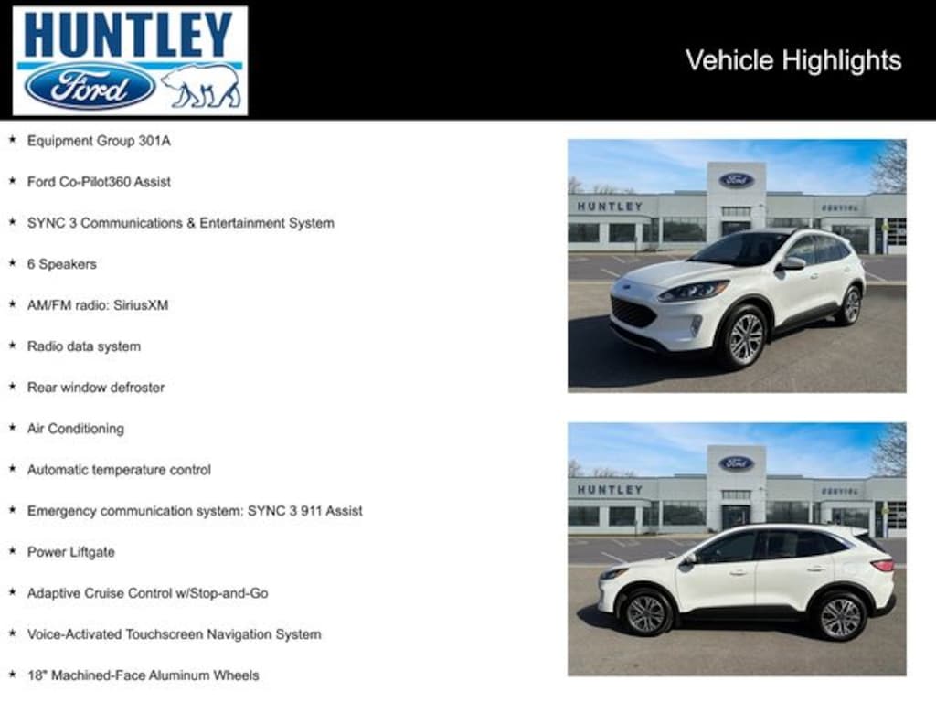 2020 Ford Escape AWD, 18" Machined-Face Aluminum Wheels, 6 Speakers, Adaptive Cruise Control w/Stop-and-Go, Air Conditioning, AM/FM radio: SiriusXM, Automatic temperature control, Emergency communication system: SYNC 3 911 Assist, Equipment Group 301A, Ford Co-Pilot360 Assist, Power Liftgate, Radio data system, Rear window defroster, SYNC 3 Communications & Entertainment System, Voice-Activated Touchscreen Navigation System.