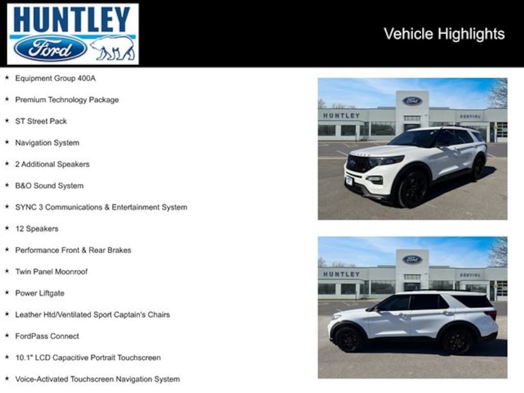 2020 Ford Explorer 4WD, 10.1" LCD Capacitive Portrait Touchscreen, 12 Speakers, 2 Additional Speakers, B&O Sound System, Equipment Group 400A, FordPass Connect, Leather Htd/Ventilated Sport Captain's Chairs, Navigation System, Performance Front & Rear Brakes, Power Liftgate, Premium Technology Package, ST Street Pack, SYNC 3 Communications & Entertainment System, Twin Panel Moonroof, Voice-Activated Touchscreen Navigation System, Wheels: 21" Aluminum.