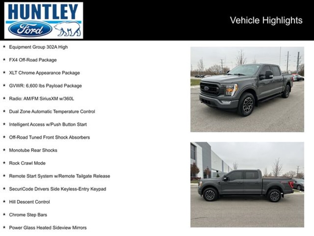 2021 Ford F-150 4WD, 10-Way Power Driver & Passenger Seats, 2-Bar Style Grille w/Chrome 2 Minor Bars, 4x4 FX4 Off-Road Bodyside Decal, 8" Productivity Screen in Instrument Cluster, Auto-Dimming Rear-View Mirror, Chrome Door & Tailgate Handles w/Body-Color Bezel, Chrome Single-Tip Exhaust, Chrome Step Bars, Class IV Trailer Hitch Receiver, Dual Zone Automatic Temperature Control, Equipment Group 302A High, Extended Range 36 Gallon Fuel Tank, FX4 Off-Road Package, GVWR: 6,600 lbs Payload Package, Heated Front Seats, Hill Descent Control, Intelligent Access w/Push Button Start, Leather-Wrapped Steering Wheel, LED Box Lighting w/Zone Lighting, LED Reflector Headlamps, LED Sideview Mirror Spotlights, Monotube Rear Shocks, Off-Road Tuned Front Shock Absorbers, Onboard 400W Outlet, Power Glass Heated Sideview Mirrors, Radio: AM/FM SiriusXM w/360L, Rear Under-Seat Storage, Remote Start System w/Remote Tailgate Release, Rock Crawl Mode, SecuriCode Drivers Side Keyless-Entry Keypad, SYNC 4 w/Enhanced Voice Recognition, Tray Style Floor Liner, Wheels: 18" Chrome-Like PVD, XLT Chrome Appearance Package. Clean CARFAX.