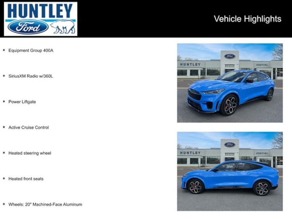 2021 Ford Mustang Mach-E Active Cruise Control, Equipment Group 400A, Heated front seats, Heated steering wheel, Power Liftgate, SiriusXM Radio w/360L, Wheels: 20" Machined-Face Aluminum.