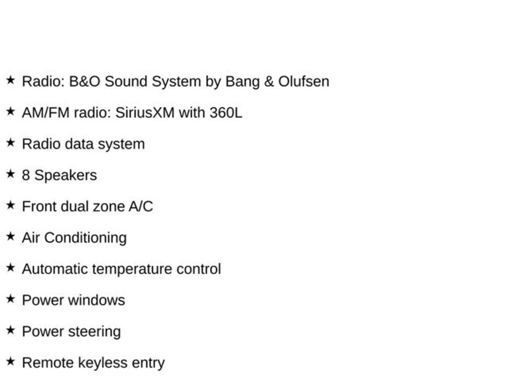 - Radio: B&O Sound System by Bang & Olufsen