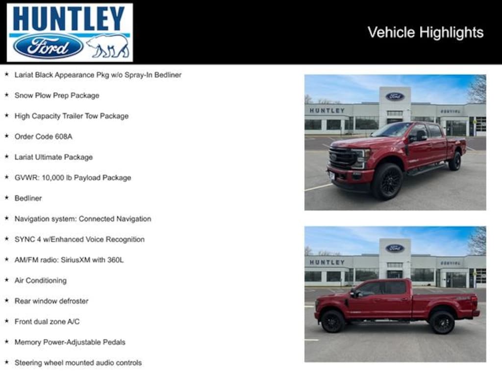 2022 Ford F-250SD Bedliner, 4WD, 4-Wheel Disc Brakes, 6" Ebony Black Angular Running Boards, ABS brakes, Air Conditioning, AM/FM radio: SiriusXM with 360L, Ambient Lighting - Fixed Color, Auto High-beam Headlights, Black Out Surrounds LED Only Headlamps, Body-Color Front & Rear Bumpers, Delay-off headlights, Easy Entry®/Exit Memory Driver's Seat Feature, Ebony Black Painted Front Grille Bars, Ebony Black Painted Mirror Caps, Electronic-Locking w/3.55 Axle Ratio, Front dual zone A/C, Front fog lights, Fully automatic headlights, GVWR: 10,000 lb Payload Package, High Capacity Trailer Tow Package, Intelligent Access w/Push-Button Start, Lariat Black Appearance Pkg w/o Spray-In Bedliner, Lariat Ultimate Package, LED Box Lighting, Memory Power-Adjustable Pedals, Navigation system: Connected Navigation, Order Code 608A, Panic alarm, Power driver seat, Power Heated/Ventilated Driver Seat w/Memory, Power Heated/Ventilated Passenger Seat, Power steering, Power Telescoping/Tilt Steering Wheel/Column, Power windows, PowerScope Trailer Tow Mirrors w/Memory, Rear Wheel Well Liners (Pre-Installed), Rear window defroster, Remote keyless entry, Remote Start System, Remote Tailgate Release, Snow Plow Prep Package, Steering wheel mounted audio controls, SYNC 4 w/Enhanced Voice Recognition, Tailgate Step & Handle, Traction control, Wheels: 20" High-Gloss Black Premium Painted Alum. Clean CARFAX.