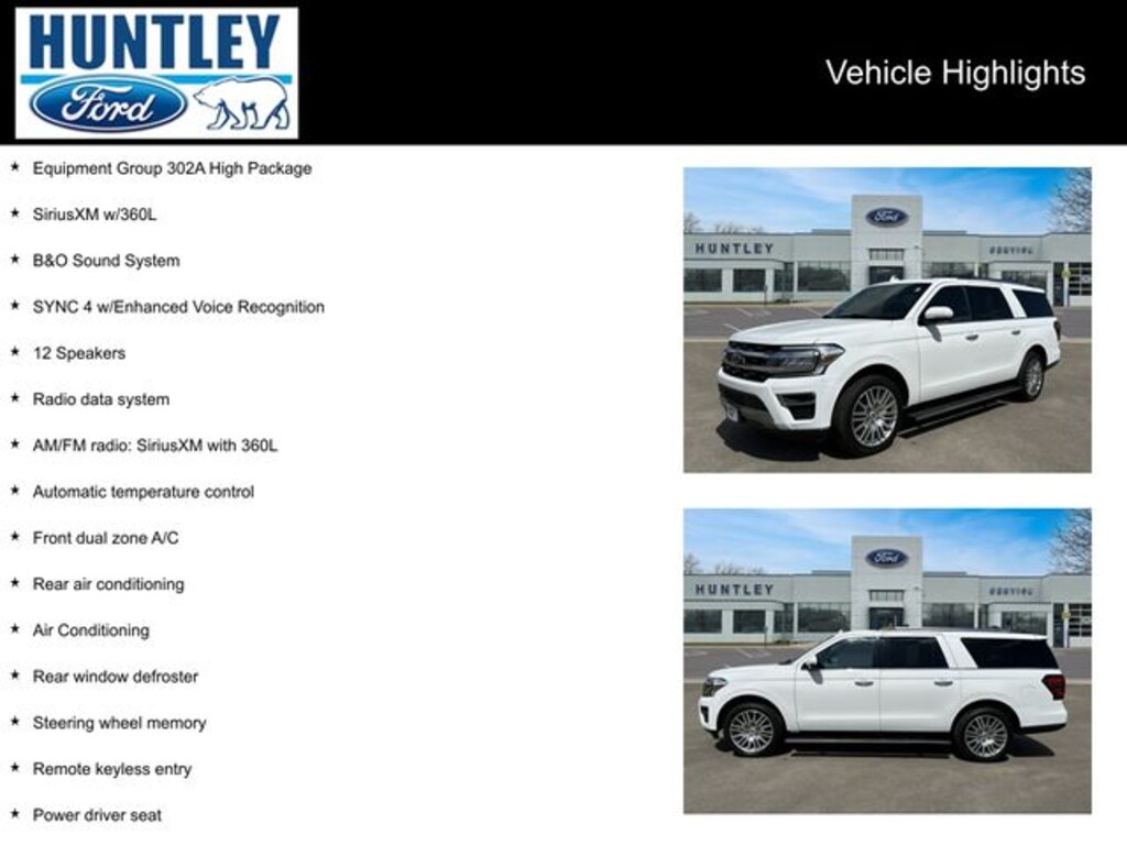 2024 Ford Expedition Max 12 Speakers, Air Conditioning, AM/FM radio: SiriusXM with 360L, Automatic temperature control, B&O Sound System, Ebony Black Mesh Grille, Equipment Group 302A High Package, Exterior Parking Camera Rear, Front dual zone A/C, Heavy-Duty Independent Suspension, Magnetic-Painted Power Deployable Running Boards, Power driver seat, Power Liftgate, Power moonroof, Power steering, Power windows, Power-Folding Sideview Mirrors w/Autofold, Radio data system, Rear air conditioning, Rear window defroster, Remote keyless entry, SiriusXM w/360L, Steering wheel memory, Steering wheel mounted audio controls, SYNC 4 w/Enhanced Voice Recognition, Wheels: 22" 12-Spoke Polished Aluminum. Clean CARFAX. CARFAX One-Owner.