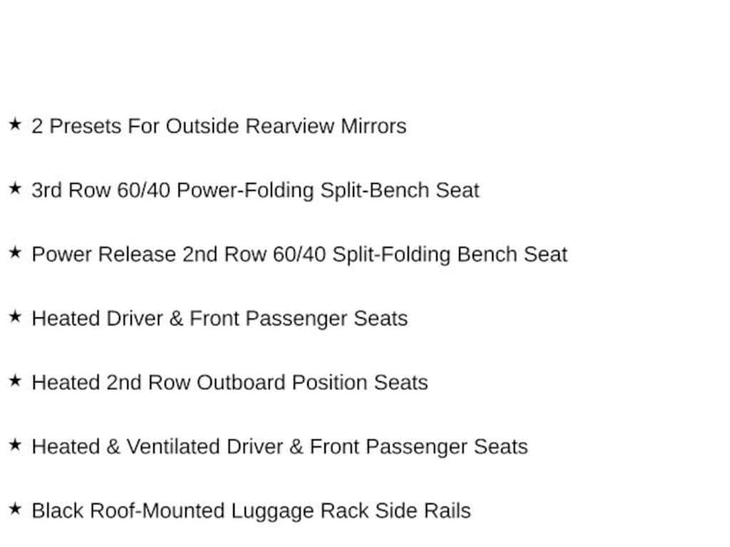 - Interior maximum rear cargo volume: 3,480 L (123 cu.ft.)