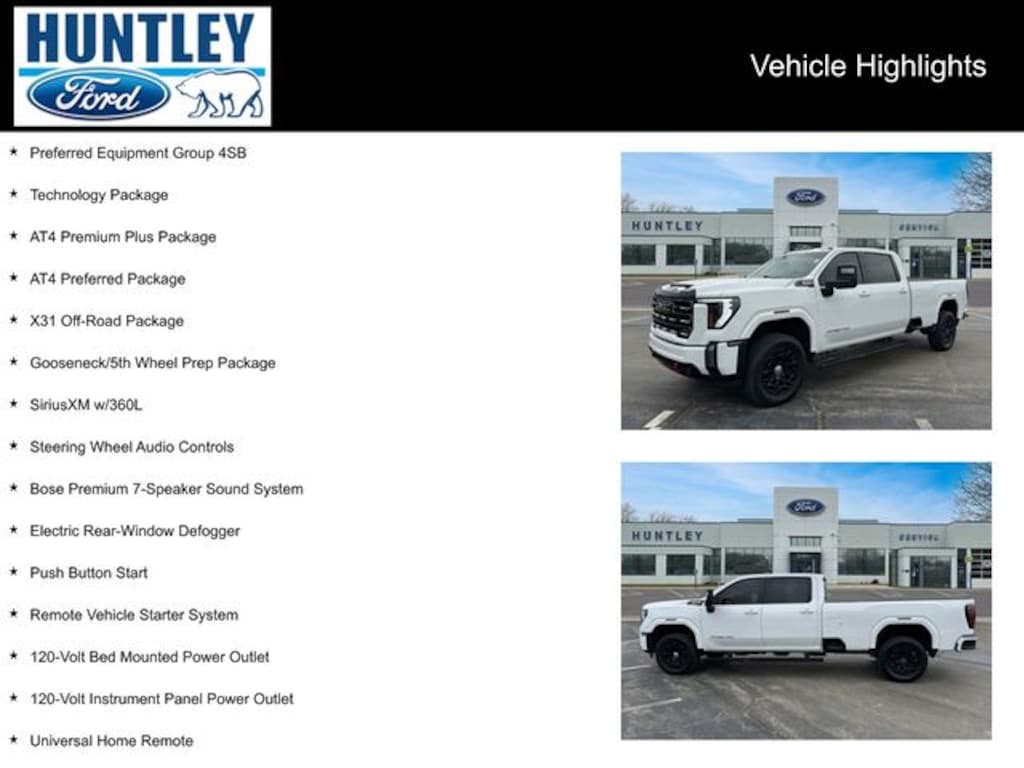 2024 GMC Sierra 2500HD 10-Speed Automatic, 4WD, Jet Black With Kalahari Accents Leather, 120-Volt Bed Mounted Power Outlet, 120-Volt Instrument Panel Power Outlet, 2 Charge-Only Rear USB Ports, 2 Charge/Data USB Ports Inside Center Console, 2 USB Ports, 2-Speed Active Transfer Case, 220-Amp Alternator, Adaptive Cruise Control, AT4 Preferred Package, AT4 Premium Plus Package, Bed View Camera w/2 Trailer Camera Provisions, Bose Premium 7-Speaker Sound System, Deep-Tinted Glass, Electric Rear-Window Defogger, Engine Block Heater, Exhaust Brake, Floor-Mounted Center Console, Front Prem Floor Liners w/Removable Carpet Insert, Front Rain-Sensing Wipers, Gloss Black Header Grille & Grille Insert Bars, GMC Connected Access Capable, Gooseneck/5th Wheel Prep Package, HD Surround Vision, Heated 2nd Row Outboard Seats, Heated Driver & Front Outboard Passenger Seats, Heavy-Duty 80 Amp Battery, Hill Descent Control, Inside Rearview Auto-Dimming Rear Camera Mirror, Integrated Trailer Brake Controller, Keyless Open & Start, LED Cargo Area Lighting, LED Smoked Amber Roof Marker Lamps, Manual Tilt-Wheel/Telescoping Steering Column, Multicolor 15" Diagonal Head-Up Display, Off-Road High Clearance Step (LPO), OnStar & GMC Connected Services Capable, Power Front Passenger Windows w/Express Up/Down, Power Sliding Rear Window w/Defogger, Power Sunroof, Preferred Equipment Group 4SB, Push Button Start, Rear Cross Traffic Alert, Rear Prem Floor Liners w/Removable Carpet Insert, Rear Wheelhouse Liners, Remote Vehicle Starter System, Safety Alert Seat, SiriusXM w/360L, Spray-On Bedliner w/AT4 Logo, Steering Wheel Audio Controls, Technology Package, Trailer Cam Provisions & Trailer Viewing Software, Trailer Side Blind Zone Alert, Ultrasonic Front & Rear Park Assist, Unauthorized Entry Theft-Deterrent System, Universal Home Remote, Ventilated Driver & Front Passenger Seats, Wireless Charging, Wireless Phone Projection, X31 Off-Road Package. Clean CARFAX.