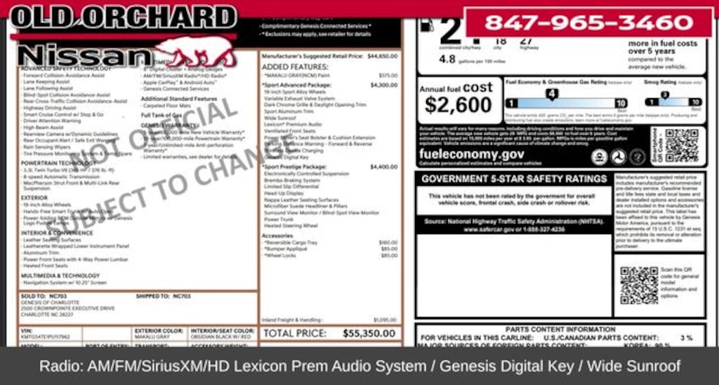 Plus Tax, Title, License and Doc Fee To qualified buyers with approved credit only. 0% APR for 72 months on new Nissans. Max 10k financed. $13.89 per thousand financed. Must qualify and finance with captive lender to receive all incentives and rebates. See dealer for details. Although every reasonable effort has been made to ensure the accuracy of the information contained in this site, absolute accuracy cannot be guaranteed. This site and all the information and materials appearing on it, are presented to the user "as is" without a warranty of any kind, either expressed or implied. All vehicles are subject to prior sales. Vehicles shown at different locations are not currently in our inventory but can be made available to you at our location within a reasonable date form the time of your request, not to exceed one week. Old Orchard Nissan serves customers 350 miles or closer. See Dealer for Details.