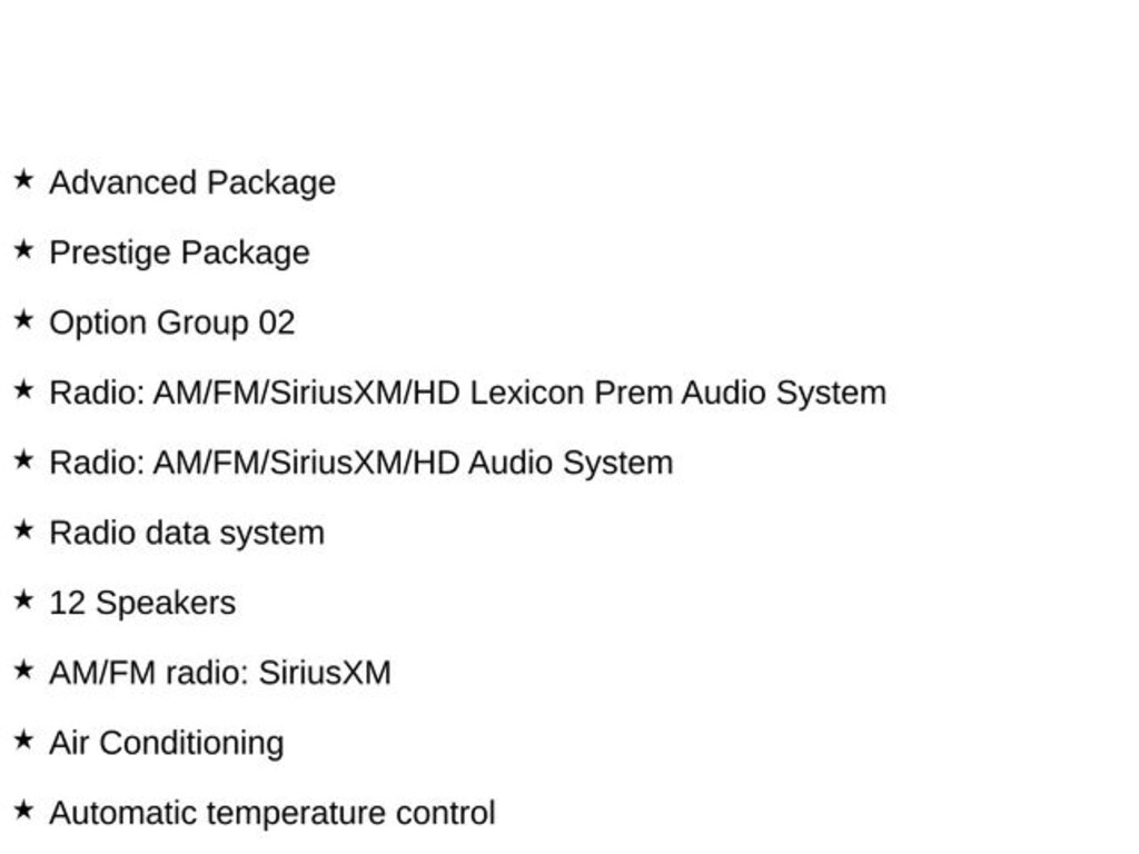 - Radio: AM/FM/SiriusXM/HD Audio System