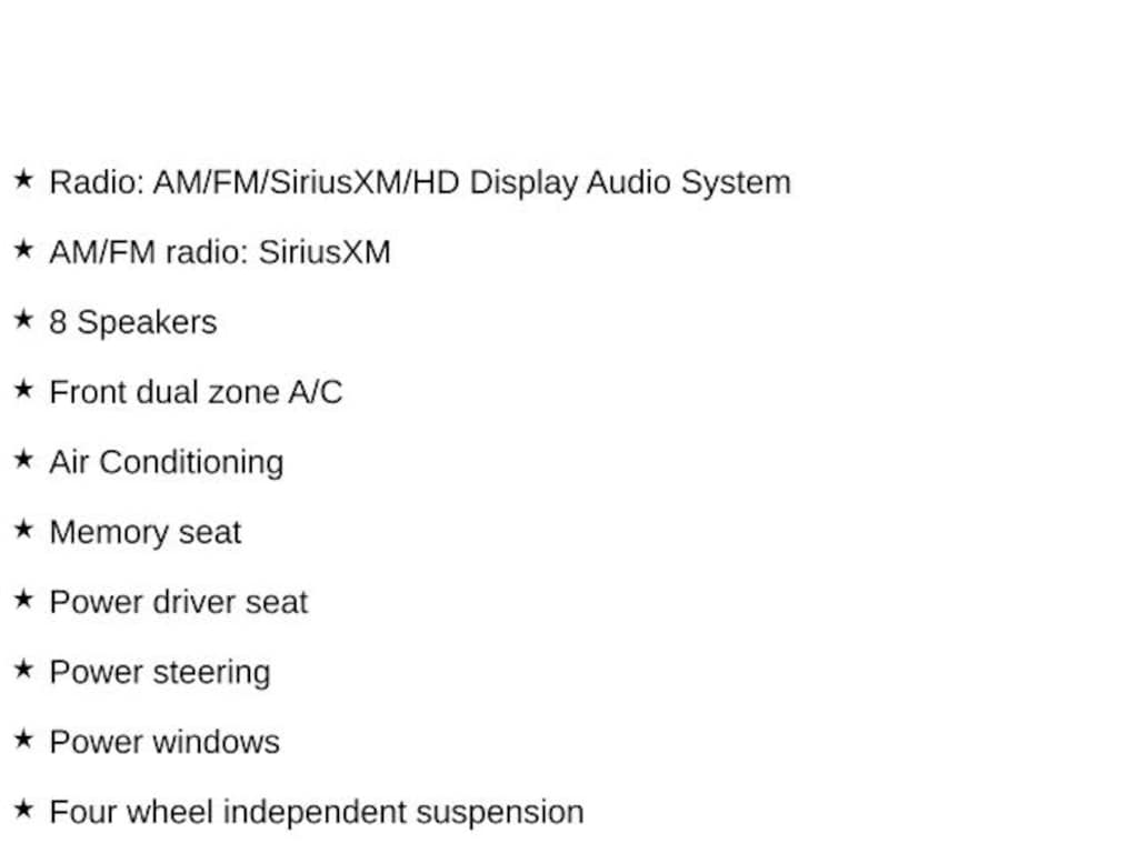 - Radio: AM/FM/SiriusXM/HD Display Audio System
