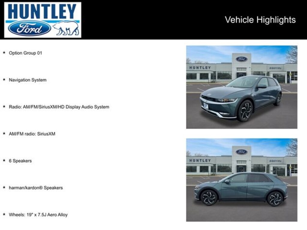 2023 Hyundai IONIQ 5 6 Speakers, AM/FM radio: SiriusXM, harman/kardon® Speakers, Navigation System, Option Group 01, Radio: AM/FM/SiriusXM/HD Display Audio System, Wheels: 19" x 7.5J Aero Alloy. CARFAX One-Owner.