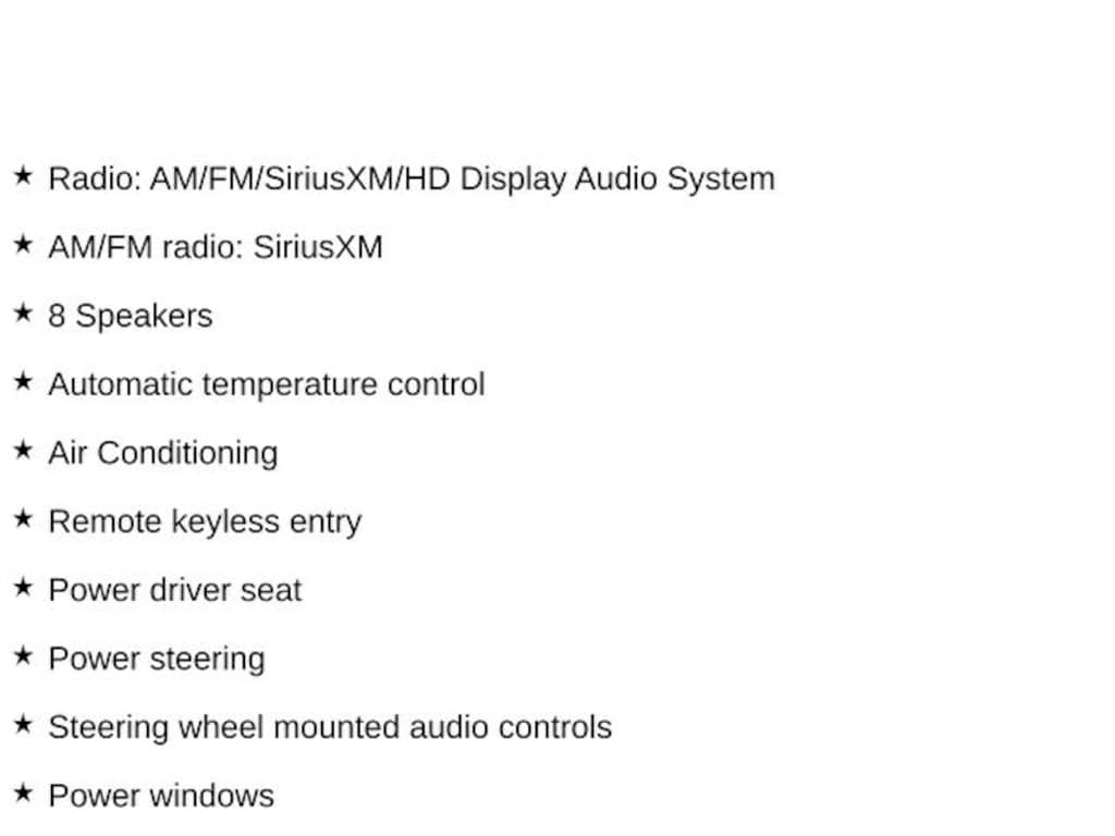 - Radio: AM/FM/SiriusXM/HD Display Audio System