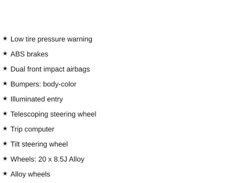 - Parking sensors: Parking Distance Warning - Forward/Reverse front and rear