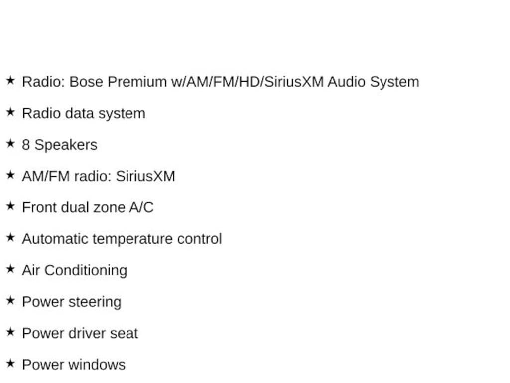 - Radio: Bose Premium w/AM/FM/HD/SiriusXM Audio System