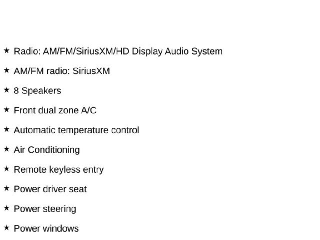 - Radio: AM/FM/SiriusXM/HD Display Audio System