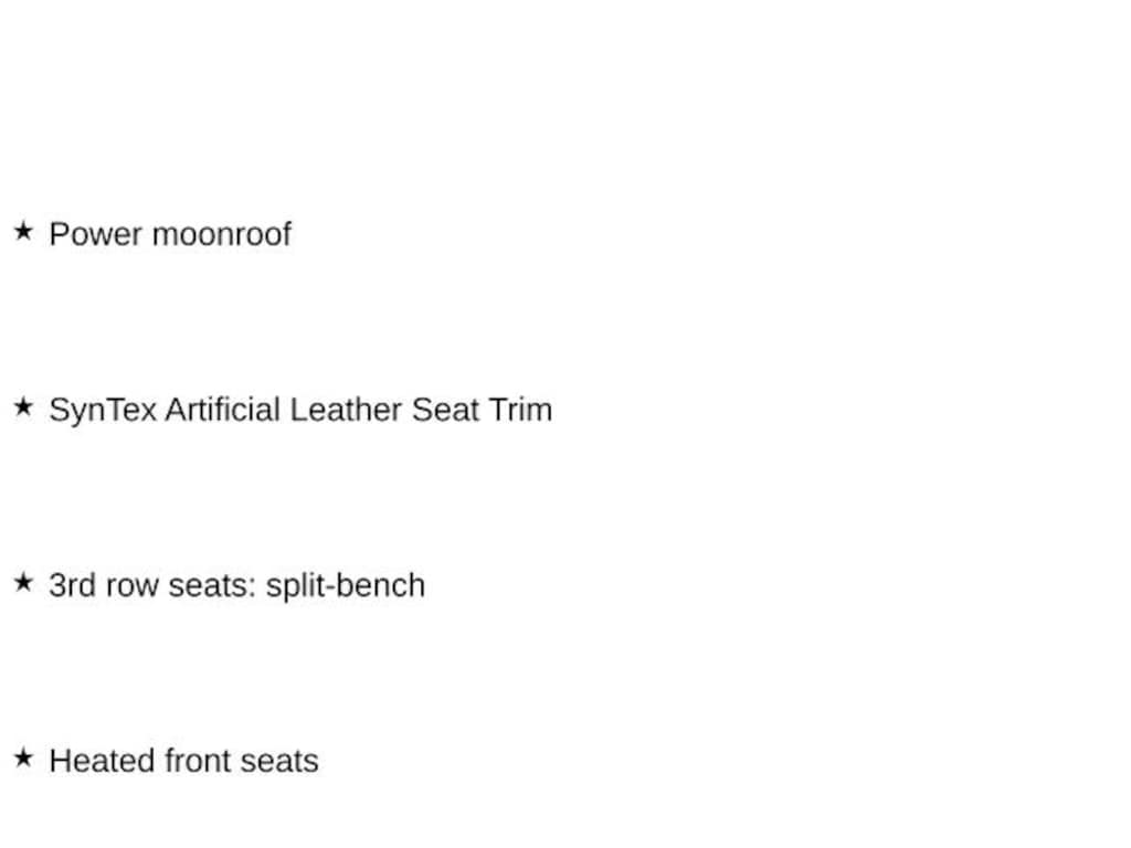 - Interior maximum rear cargo volume: 2,138 L (76 cu.ft.)