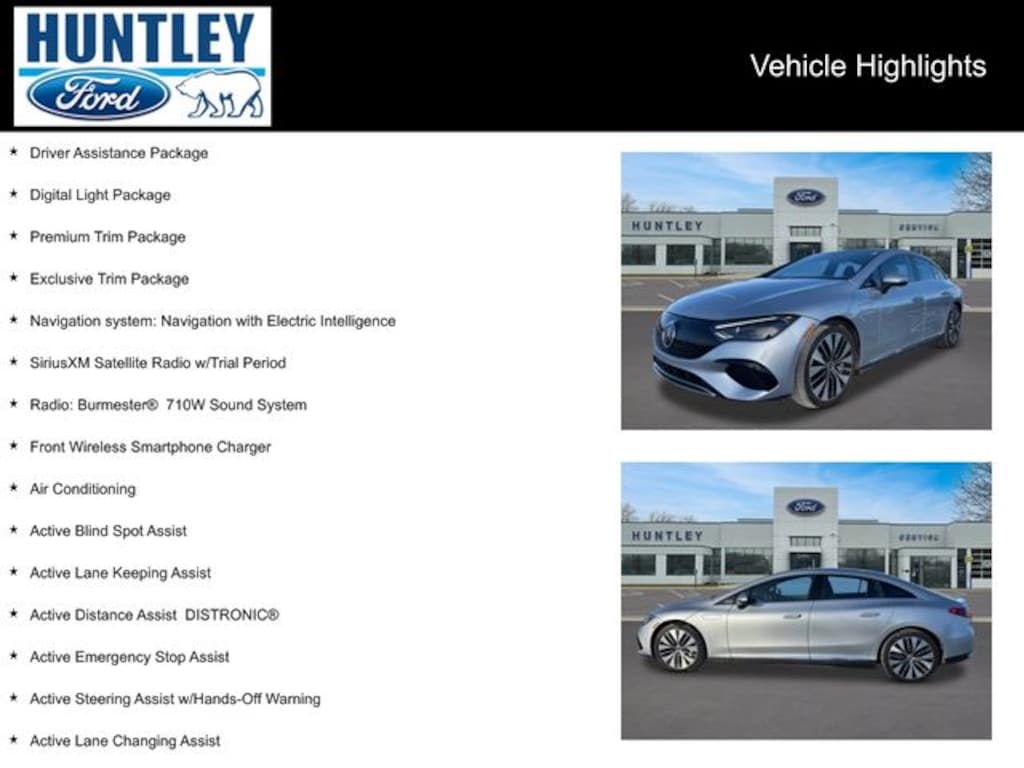 2023 Mercedes-Benz EQE Active Ambient Lighting, Active Blind Spot Assist, Active Distance Assist DISTRONIC®, Active Emergency Stop Assist, Active Lane Changing Assist, Active Lane Keeping Assist, Active Speed Limit Assist, Active Steering Assist w/Hands-Off Warning, Air Conditioning, Animation Projection Function, Digital Light, Digital Light LED Headlamp System, Digital Light Package, Driver Assistance Package, Evasive Manoeuvre Support, Exclusive Trim Package, Extended Automatic Restart in Traffic Jams, Front Wireless Smartphone Charger, Lane Keeping Assist Rear Sensors, MBUX Augmented Reality for Navigation, MBUX EQ Navigation Services, MBUX Multimedia System, MBUX Navigation, Navigation system: Navigation with Electric Intelligence, PRE-SAFE® Impulse Side, Premium Trim Package, Radio: Burmester® 710W Sound System, Route-Based Speed Adaptation, SiriusXM Satellite Radio w/Trial Period, Speed Limit Assist, Symbol Projection Function, Wheels: 20" x 9J 5-Twin Spoke Aero w/Black Accents, Wireless Smartphone Integration. Clean CARFAX. CARFAX One-Owner.