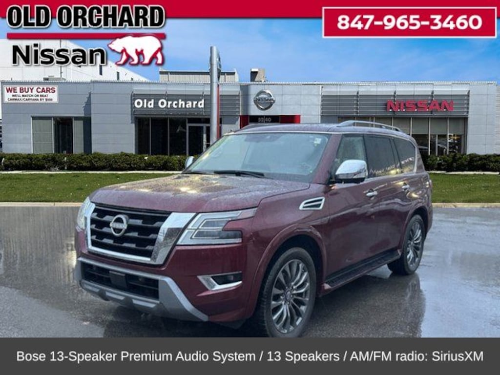 2023 Nissan Armada 7-Speed Automatic 4WD, 13 Speakers, 3rd row seats: split-bench, 4-Wheel Disc Brakes, ABS brakes, Air Conditioning, AM/FM radio: SiriusXM, Automatic temperature control, Bose 13-Speaker Premium Audio System, Driver door bin, Dual front impact airbags, Front Bucket Seats, Front dual zone A/C, Headphones, Heated front seats, Heated steering wheel, Illuminated entry, Low tire pressure warning, Power driver seat, Power steering, Power windows, Remote keyless entry, Tachometer, Telescoping steering wheel, Tilt steering wheel, Traction control. 5.6L V8 DOHC 32V LEV3-ULEV125 400hp