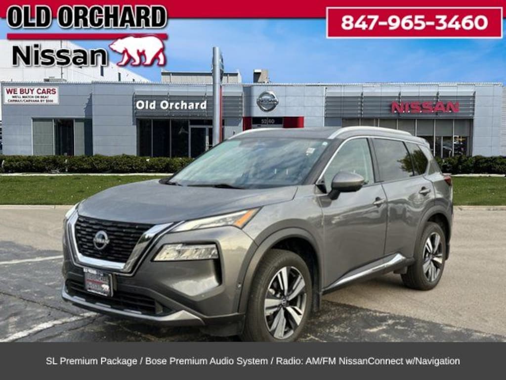 2023 Nissan Rogue CVT with Xtronic AWD, Bose Premium Audio System, Front, Side & Rear Sonar, Motion Activated Power Liftgate, ProPILOT Assist w/Navi-link, Radio: AM/FM NissanConnect w/Navigation, Rear Door Sunshades, SL Premium Package, Traffic Sign Recognition, Tri-Zone HVAC. CARFAX One-Owner. 28/34 City/Highway MPG 1.5L I3 Turbocharged DOHC 12V LEV3-ULEV50 201hp Odometer is 16239 miles below market average!