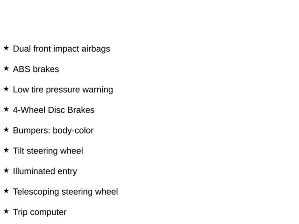 - Dual front side impact airbags