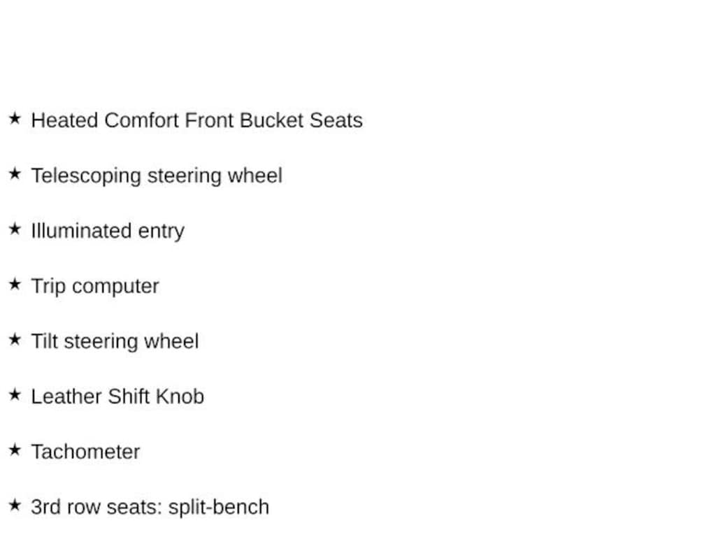 - Interior maximum rear cargo volume: 2,741 L (97 cu.ft.)